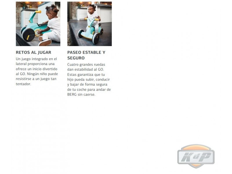 El BERG GO² es bueno para el desarrollo físico y cognitivo de tu hijo y además es un juguete divertidísimo. Las 4 ruedas son silenciosas y aportan seguridad y estabilidad en la conducción de un coche de pedales. El BERG GO² se puede usar tanto dentro como fuera de casa.