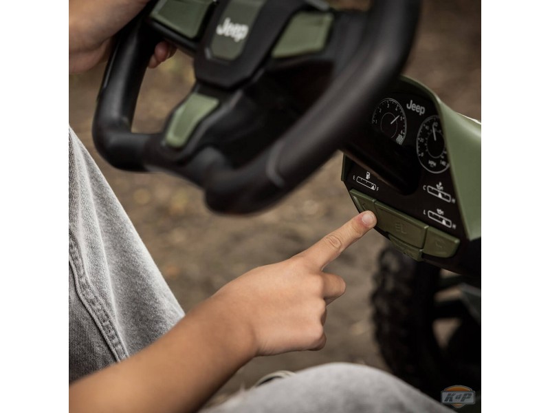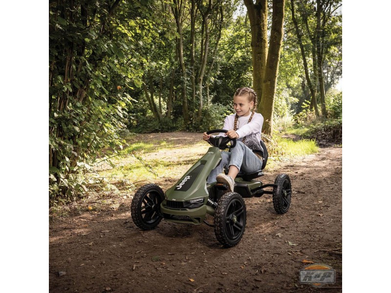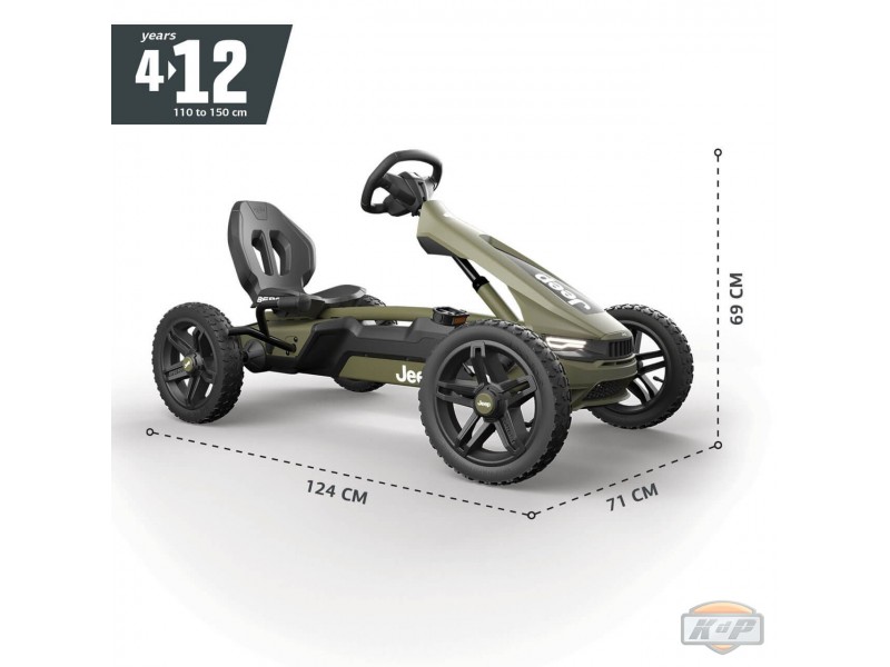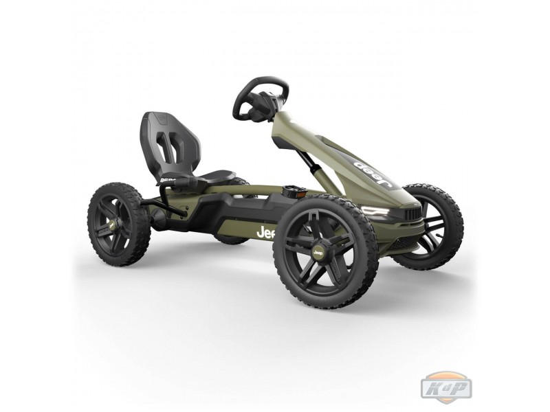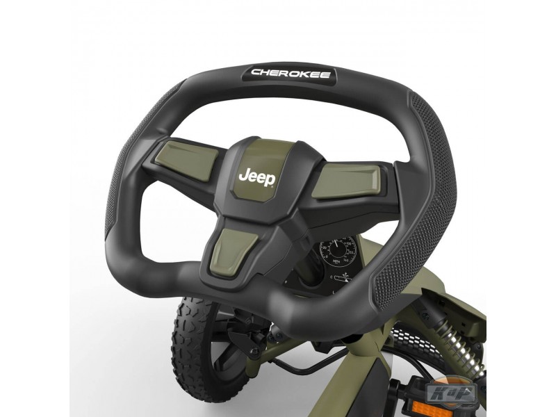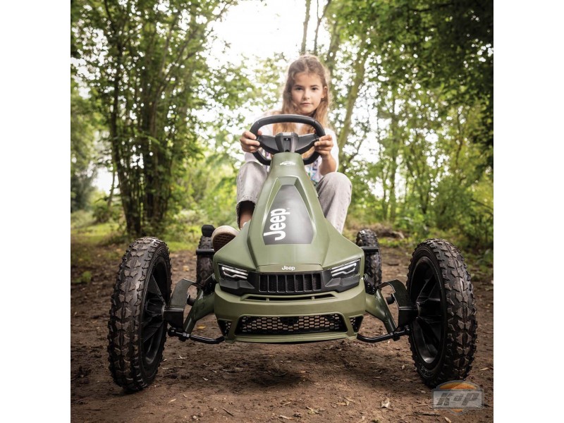 El Berg Jeep® Rally Cherokee es un kart de pedales con un tamaño compacto. El volante y asiento se pueden ajustar para adaptarlo a las diferentes edades de los niños.